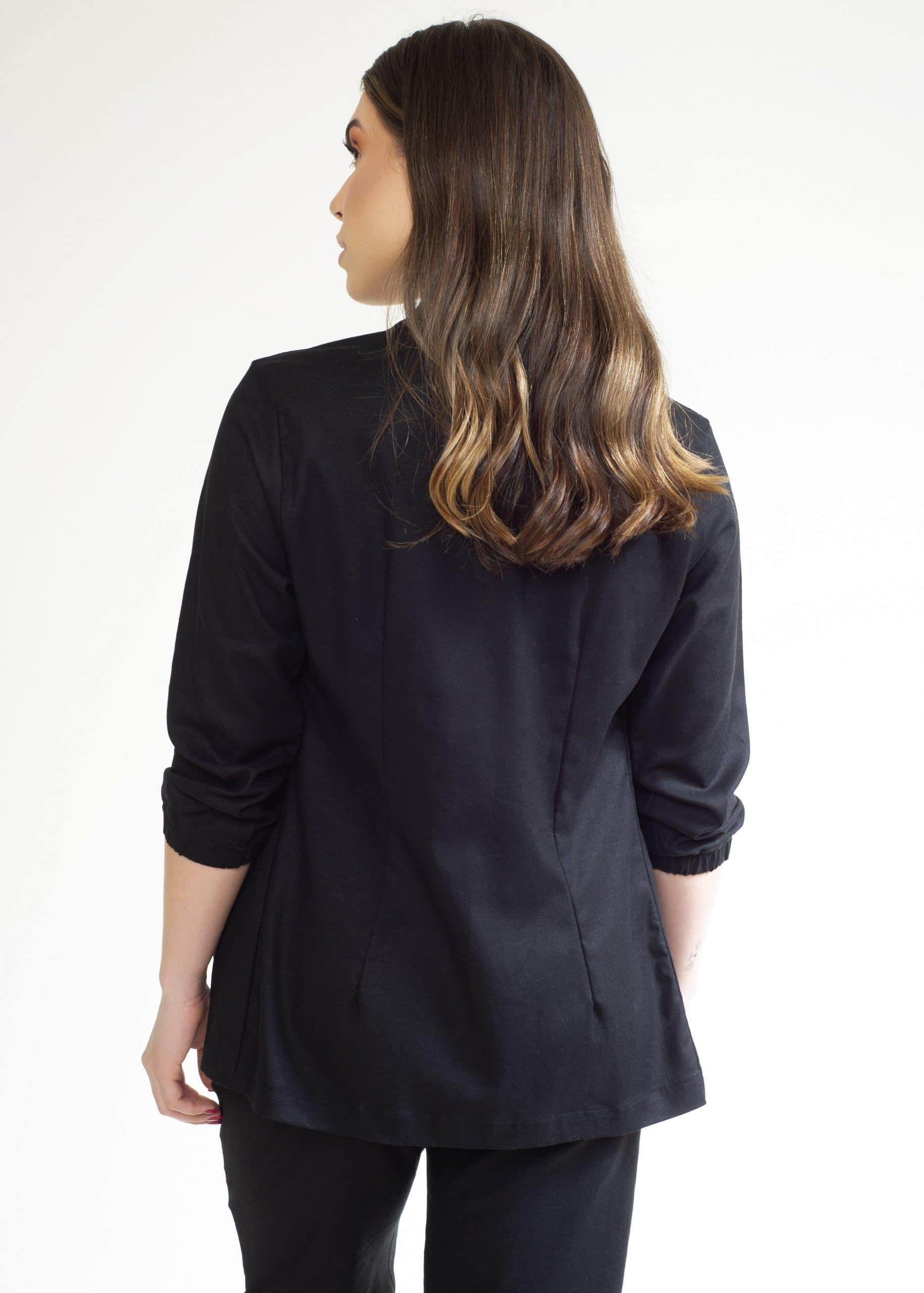 Composição: 77% viscose, 20% linho, 3% elastano