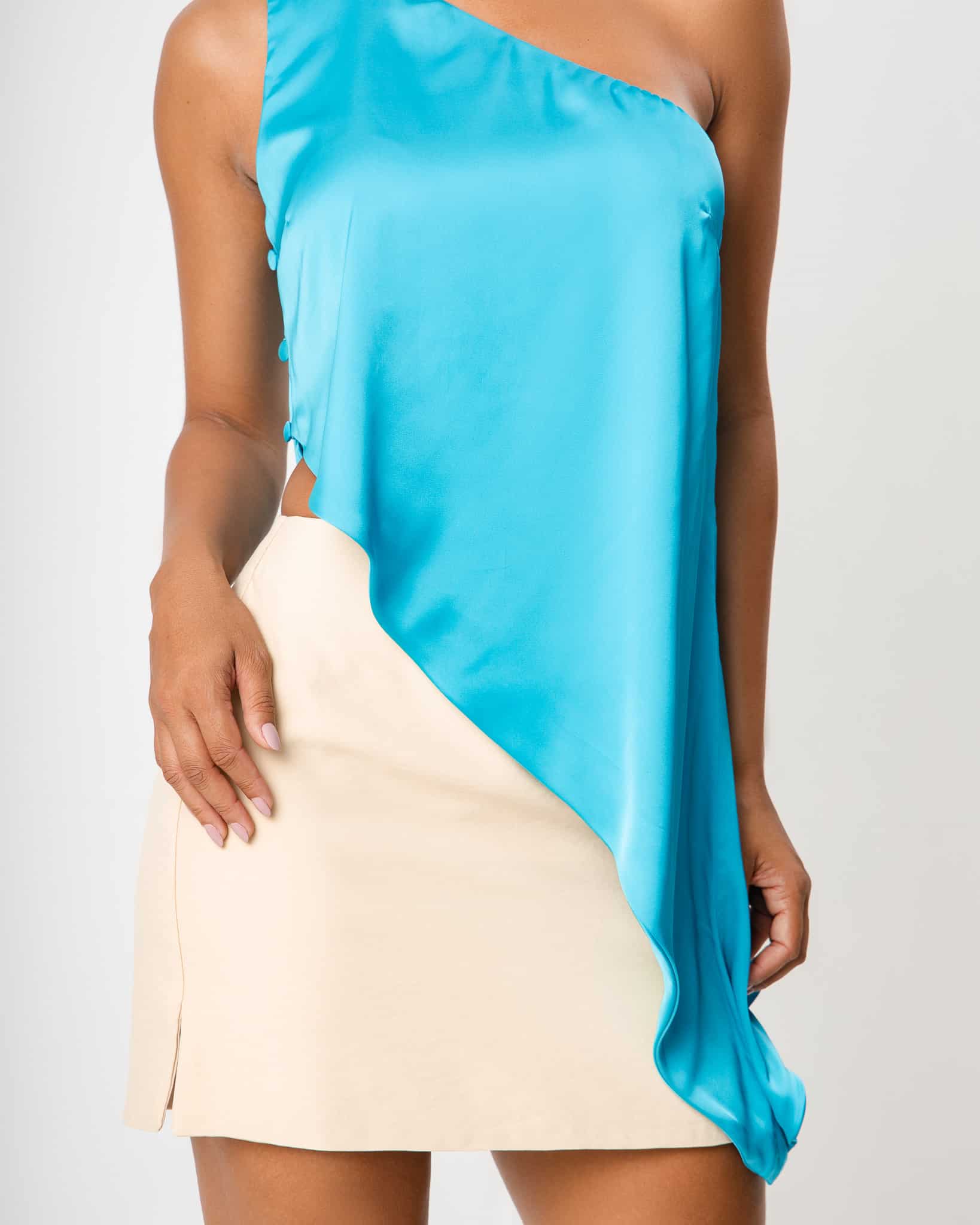 Blusa um ombro só, assimétrica.
