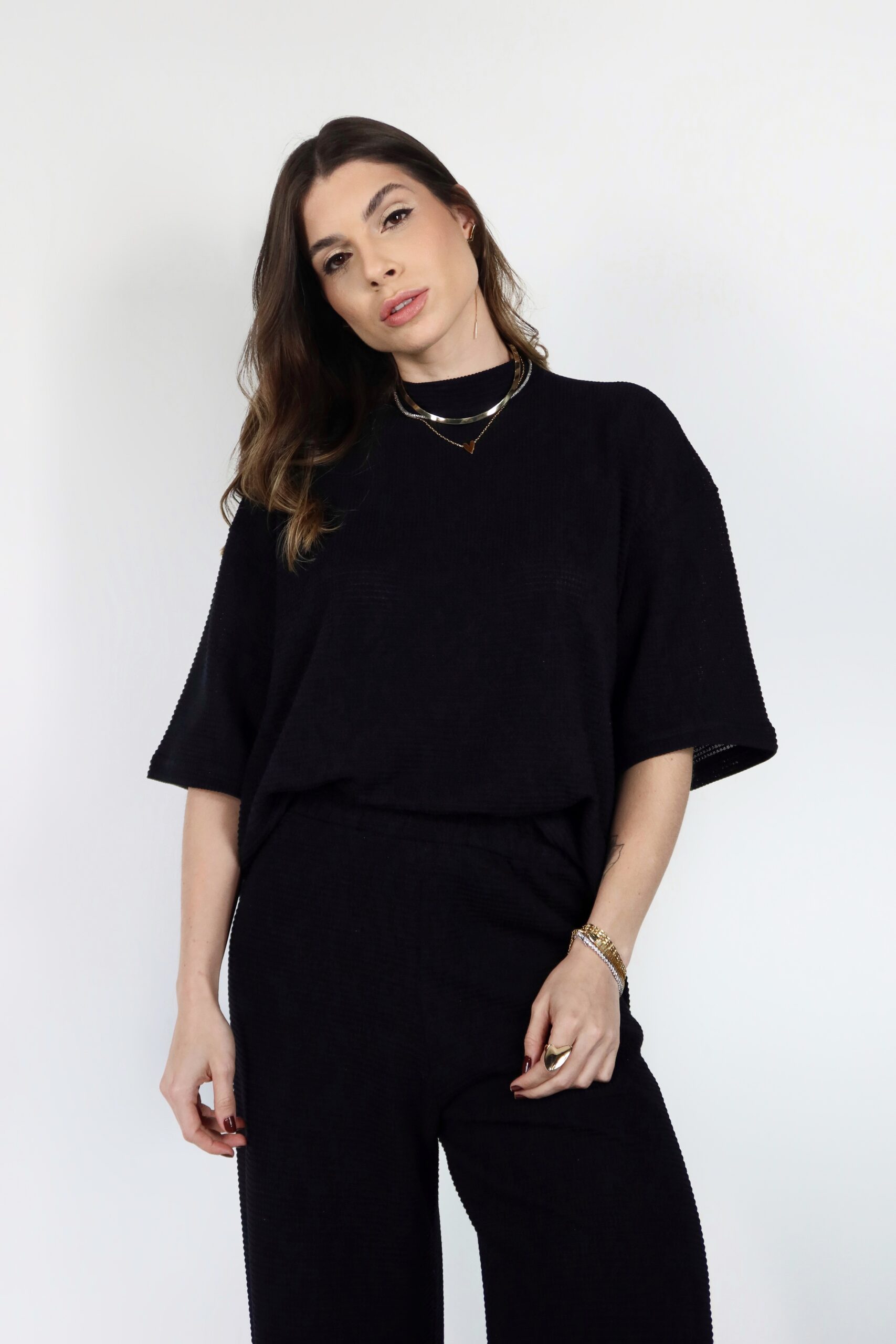 Modelo veste tamanho P.