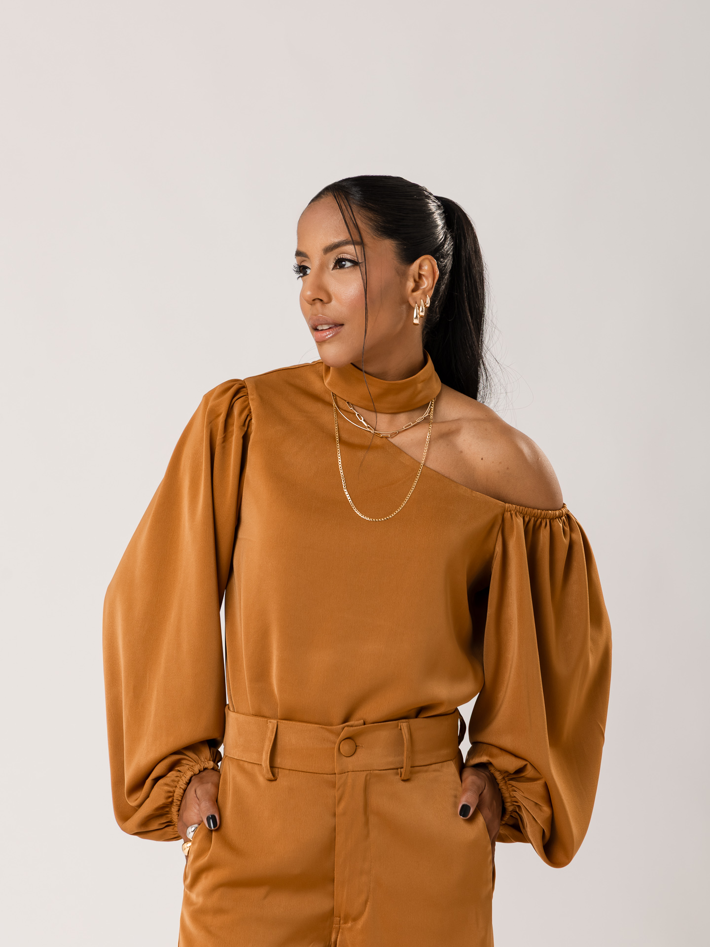 Tecido: Crepe acetinado.