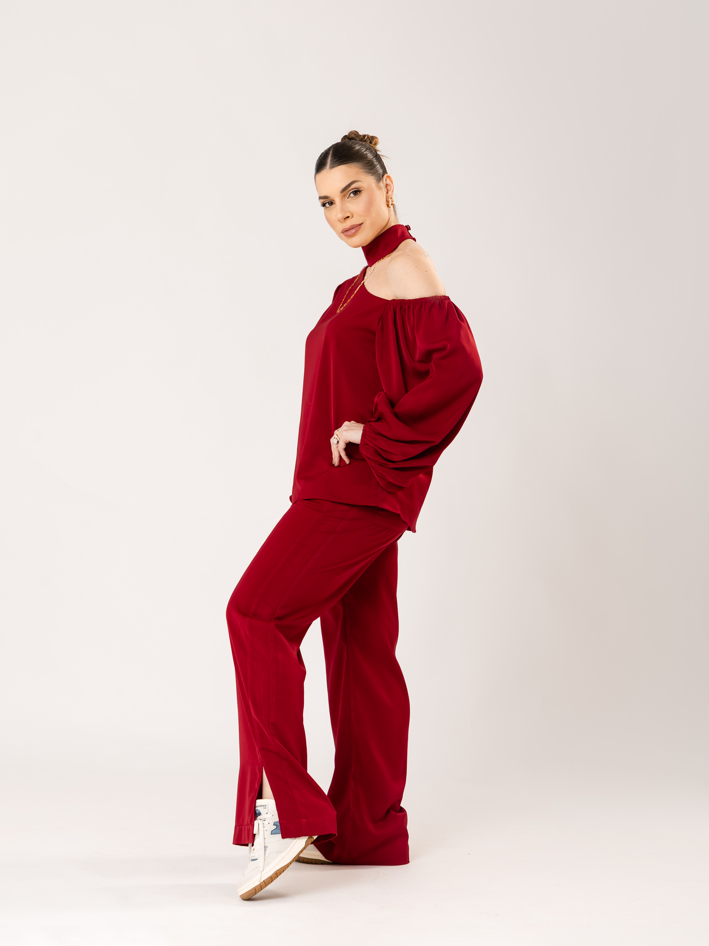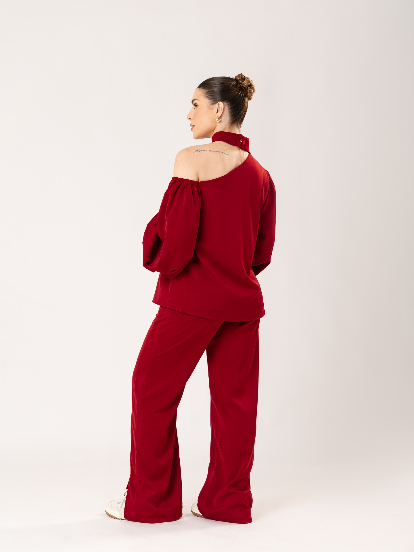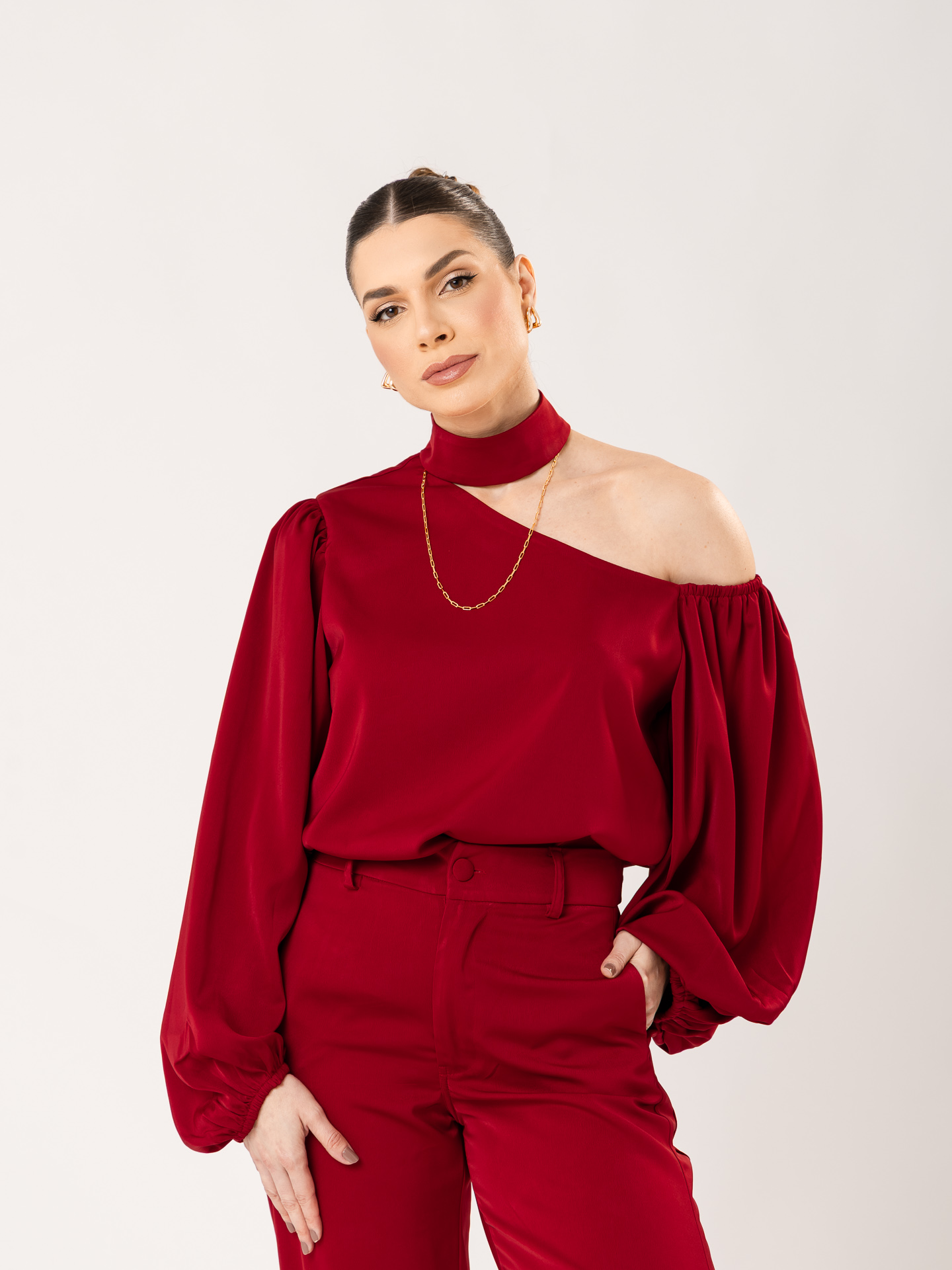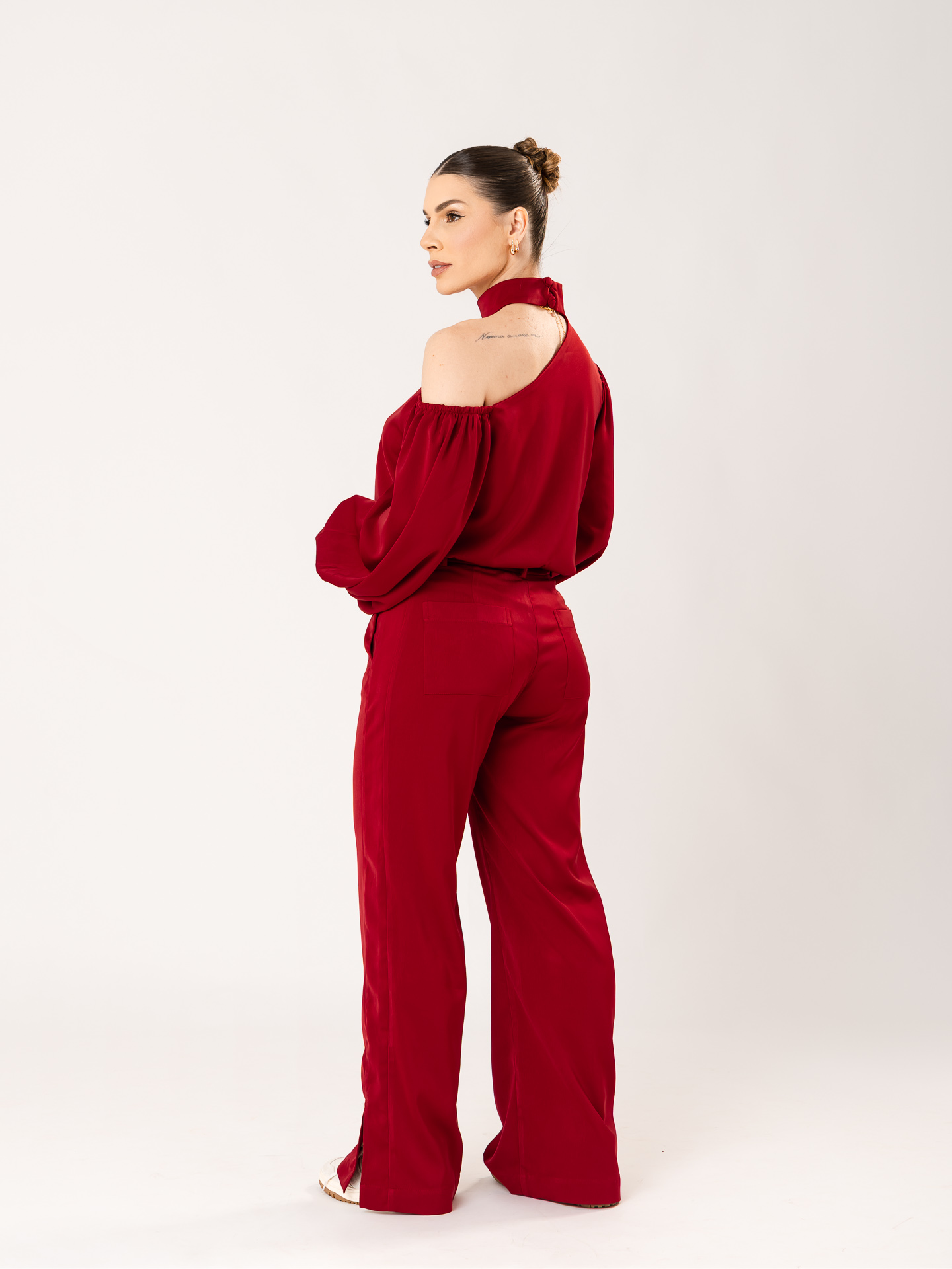 Tecido: Crepe acetinado.