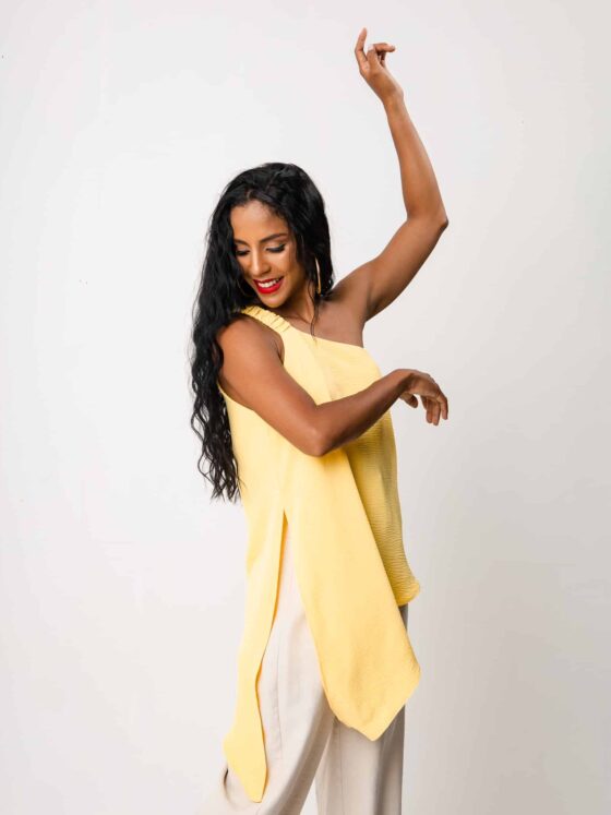 Modelo veste tamanho P.