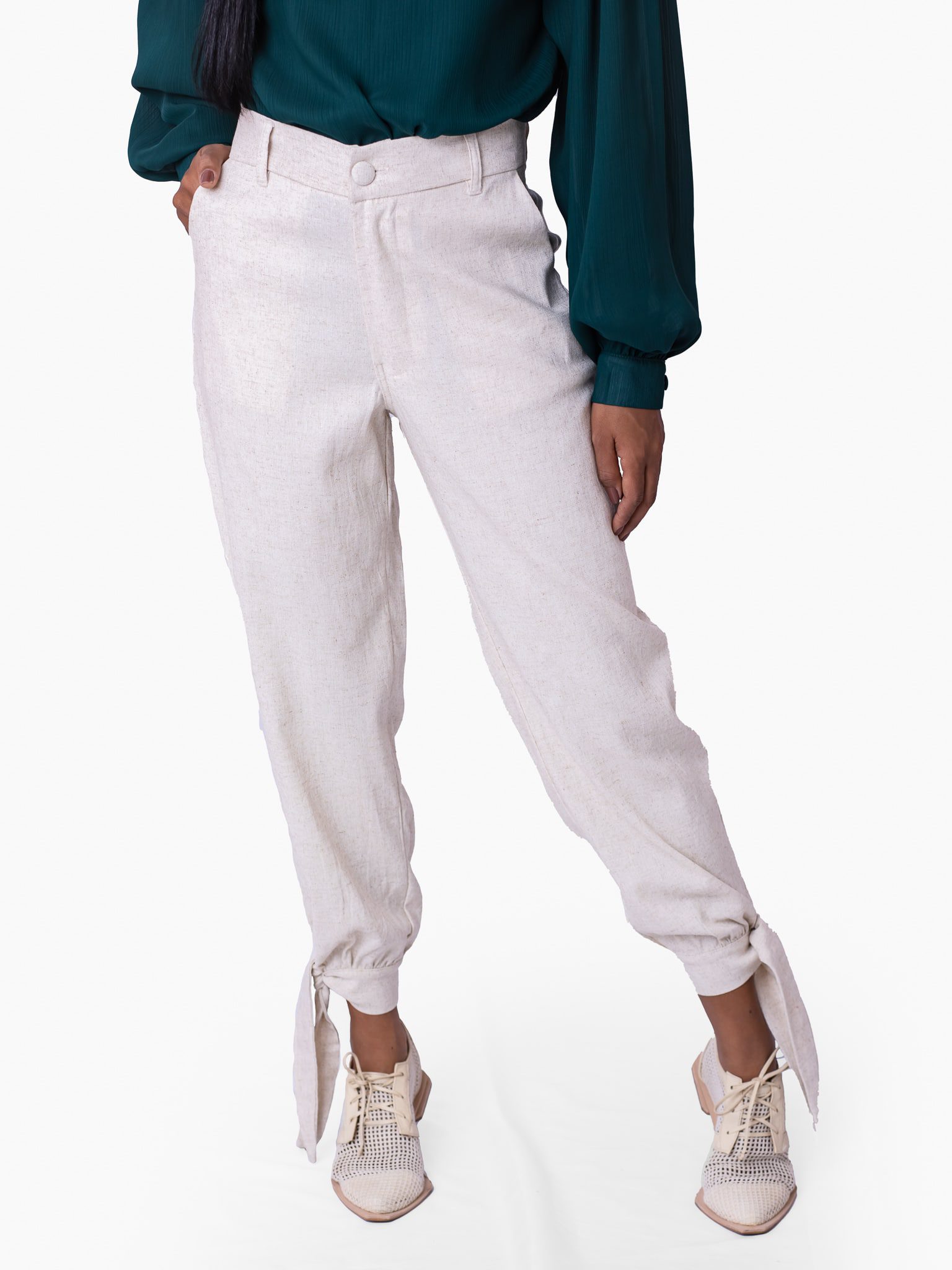 Composição: 51% viscose, 47% linho, 2% elastano