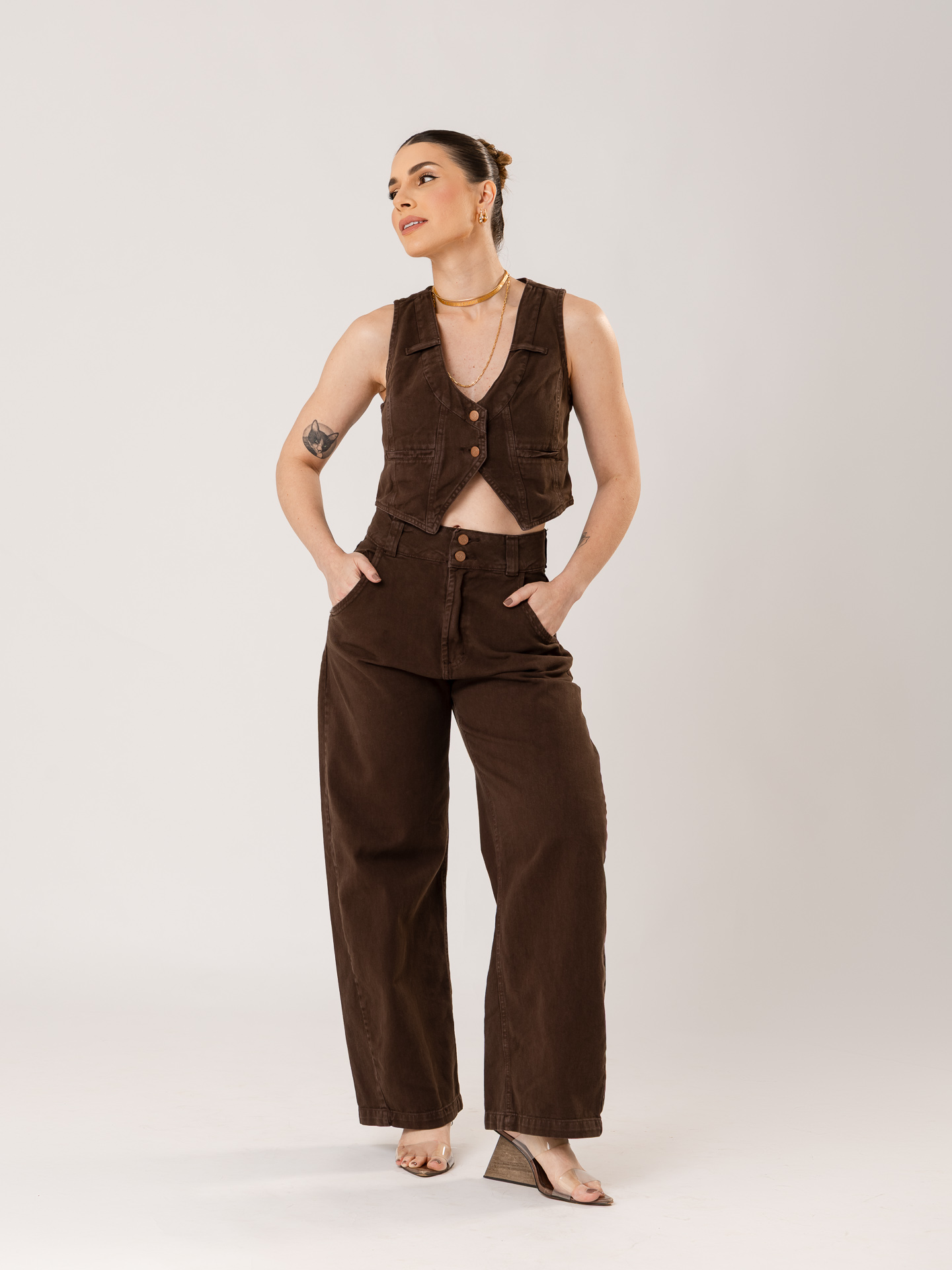 Modelo veste tamanho 38.
