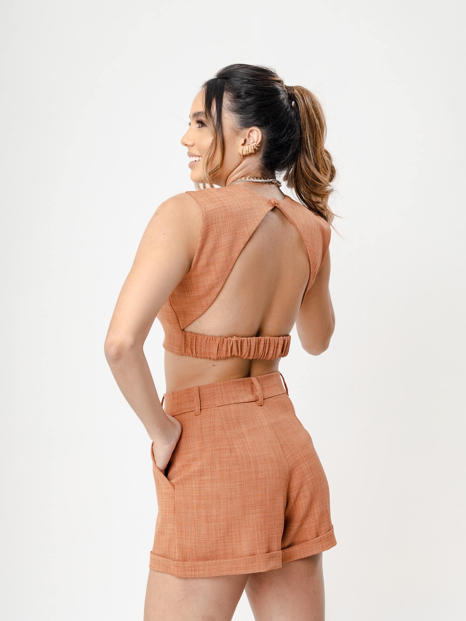 cropped Alana marrom