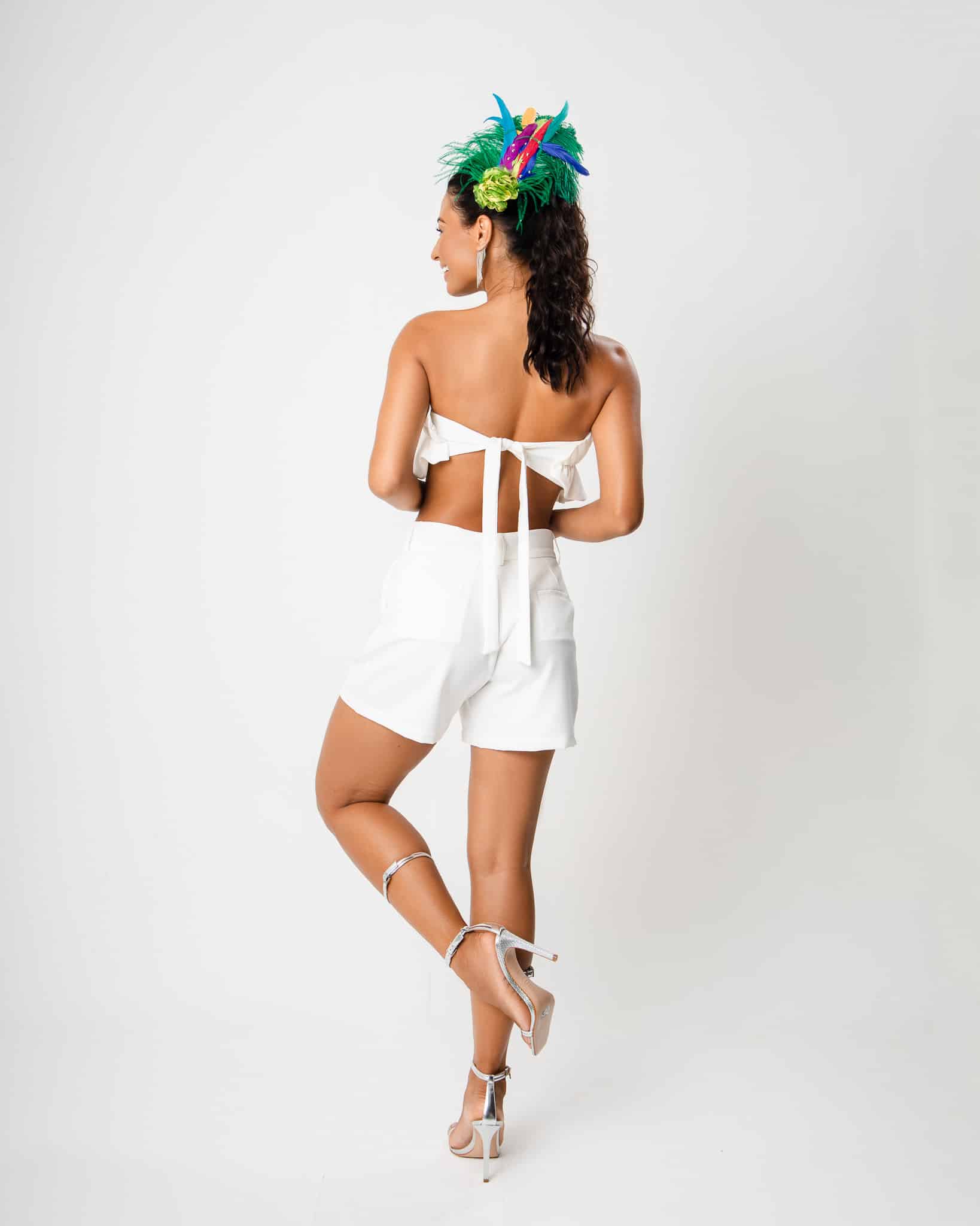 Cropped tomara que caia, encorpado, fechamento em amarração nas costas.