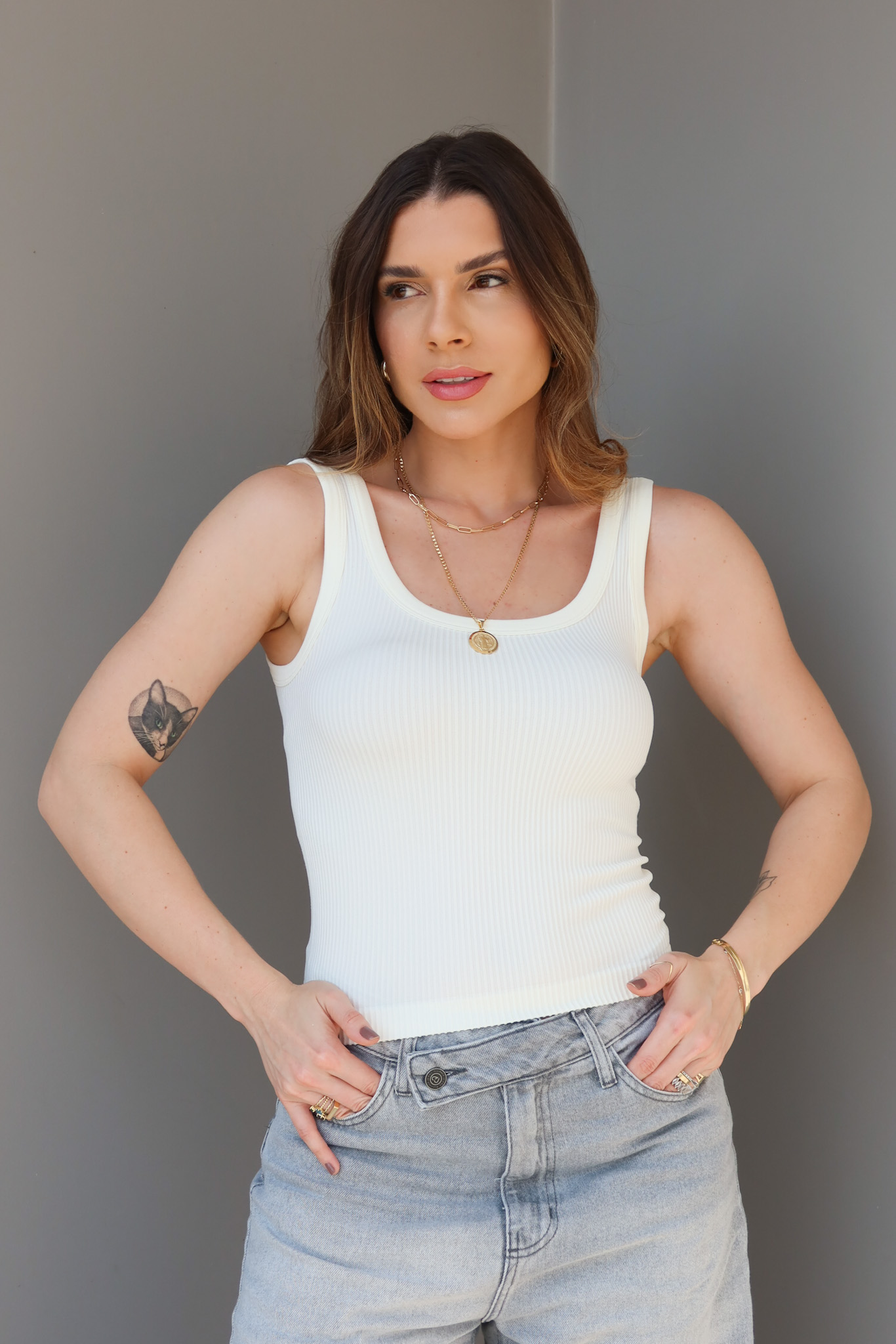 Detalhe: Regata basic confeccionada em tecido canelado power com excelente elasticidade e ajuste ao corpo.