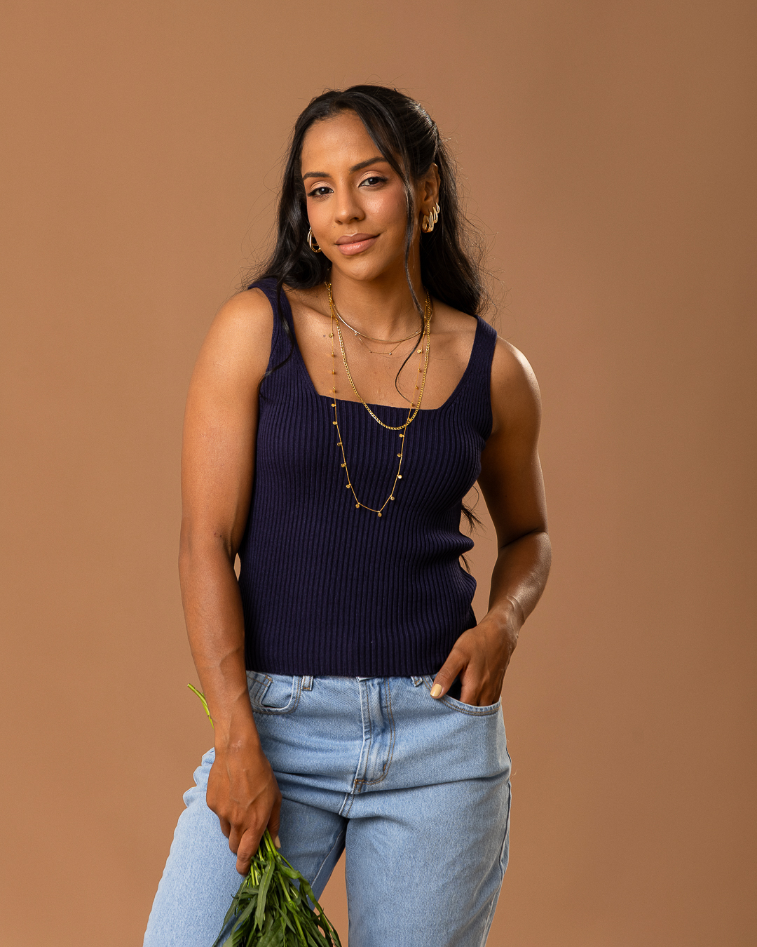 Seja o primeiro a avaliar “regata tricot decote quadrado azul marinho”
