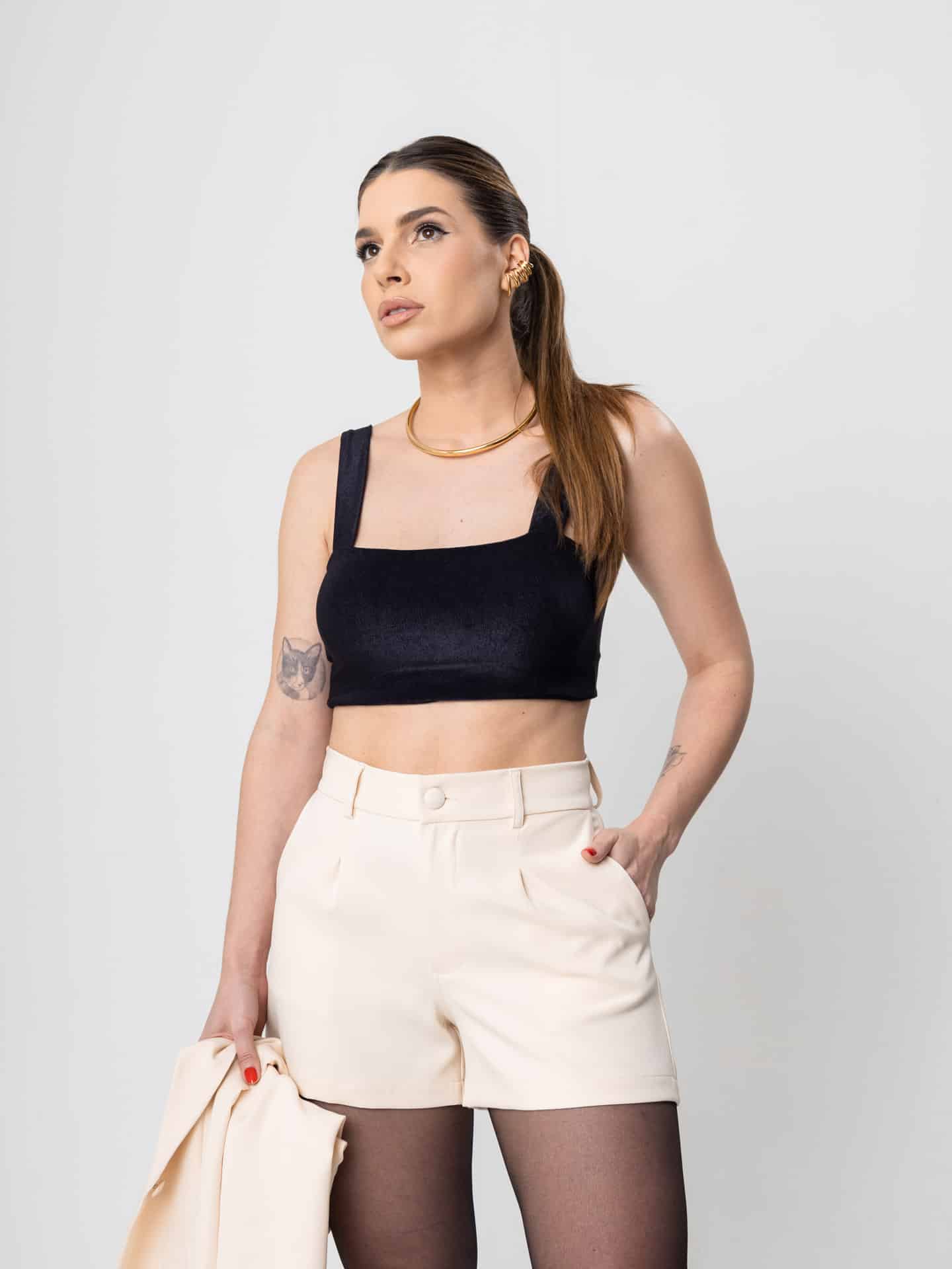Short alfaiataria com bolso faca.
