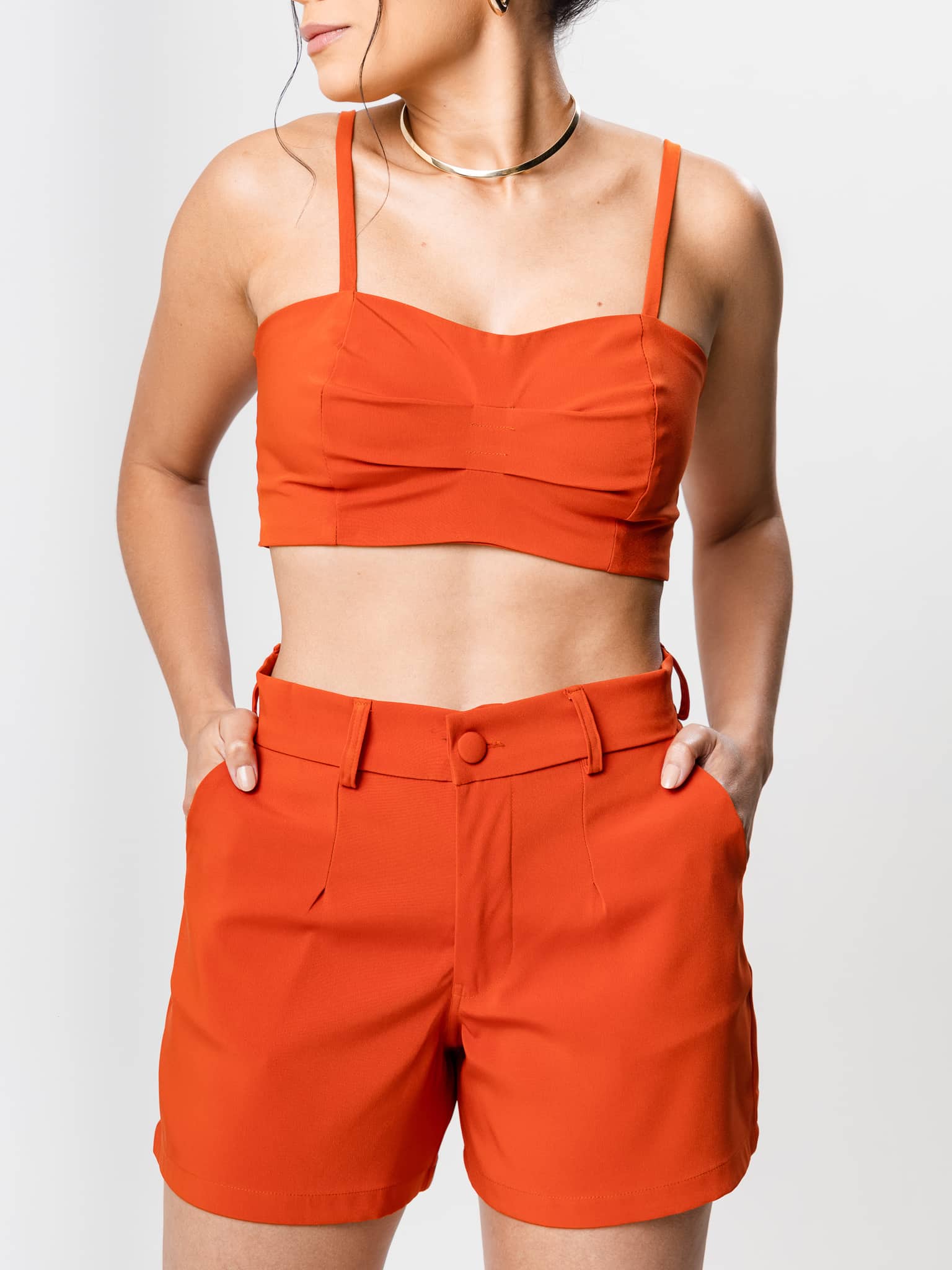 Short alfaiataria com bolso embutido.