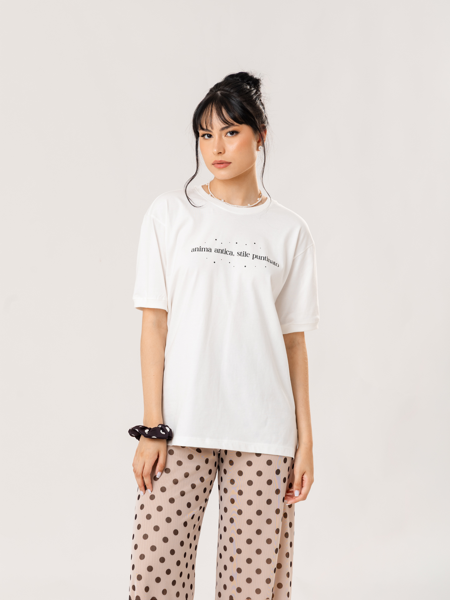Detalhe: t-shirt com modelagem over.