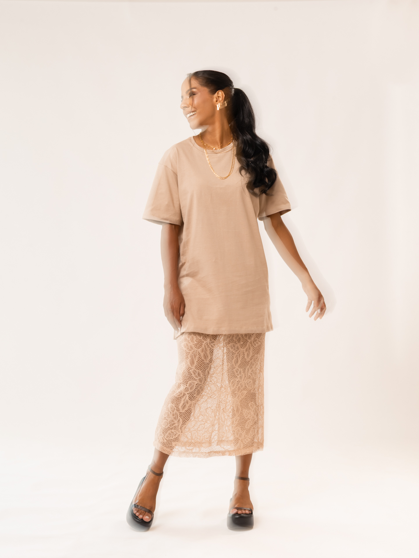 Detalhe: T-shirt com modelagem over lisa.