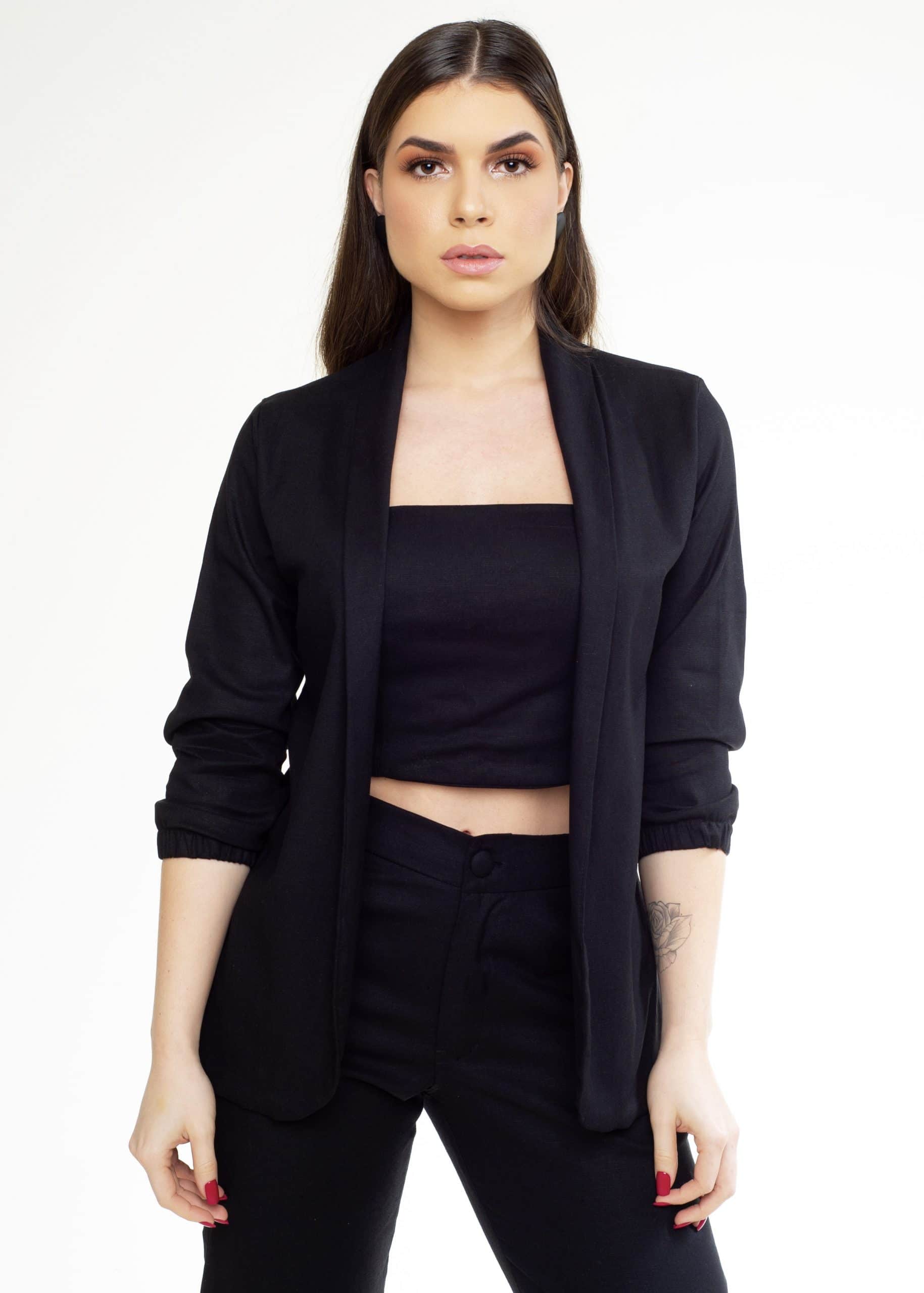 Composição: 77% viscose, 20% linho, 3% elastano.